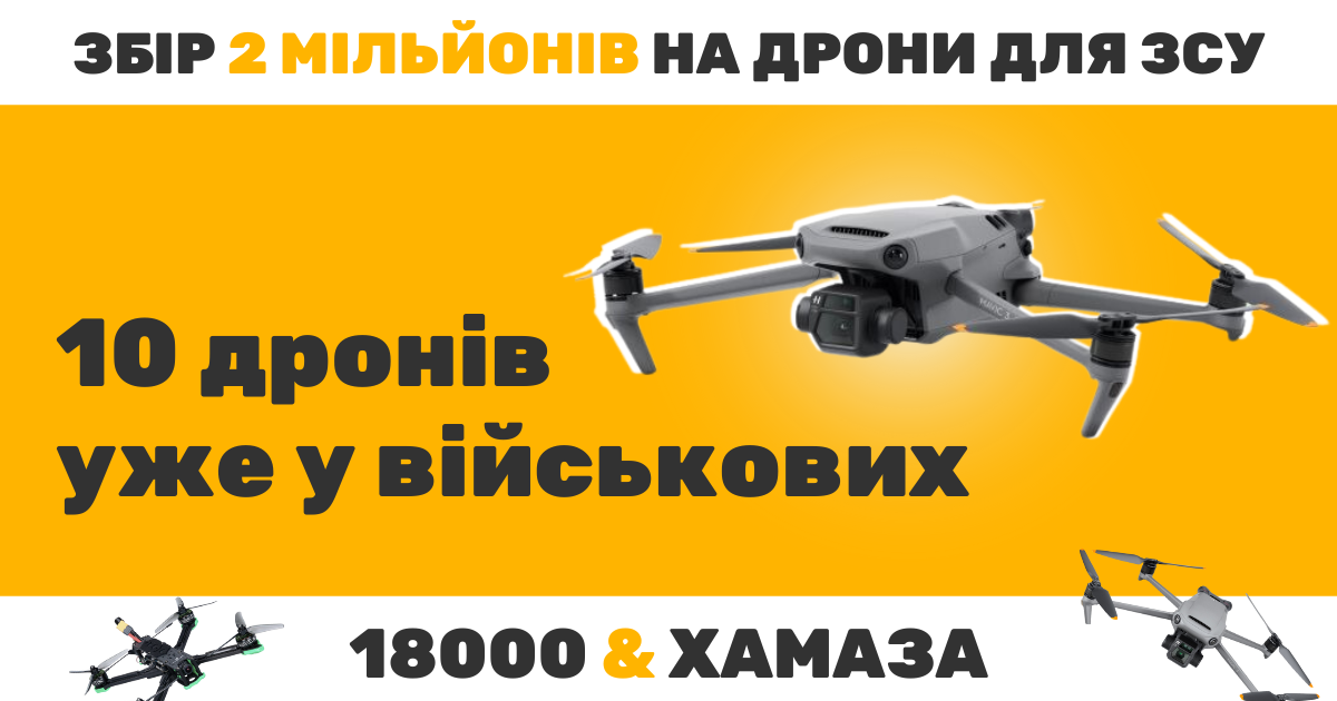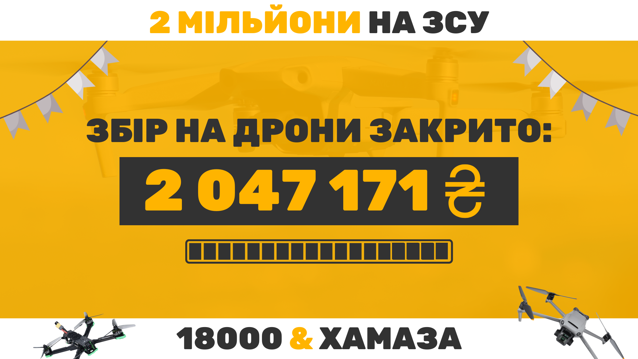 Читачі 18000 та Хамаза за три тижні зібрали понад 2 мільйони гривень на дрони для ЗСУ Команда "Вісімнадцять три нулі" Мегазбір «Знайти і знищити» від редакції 18000 та Вікторії Хамази фінішував