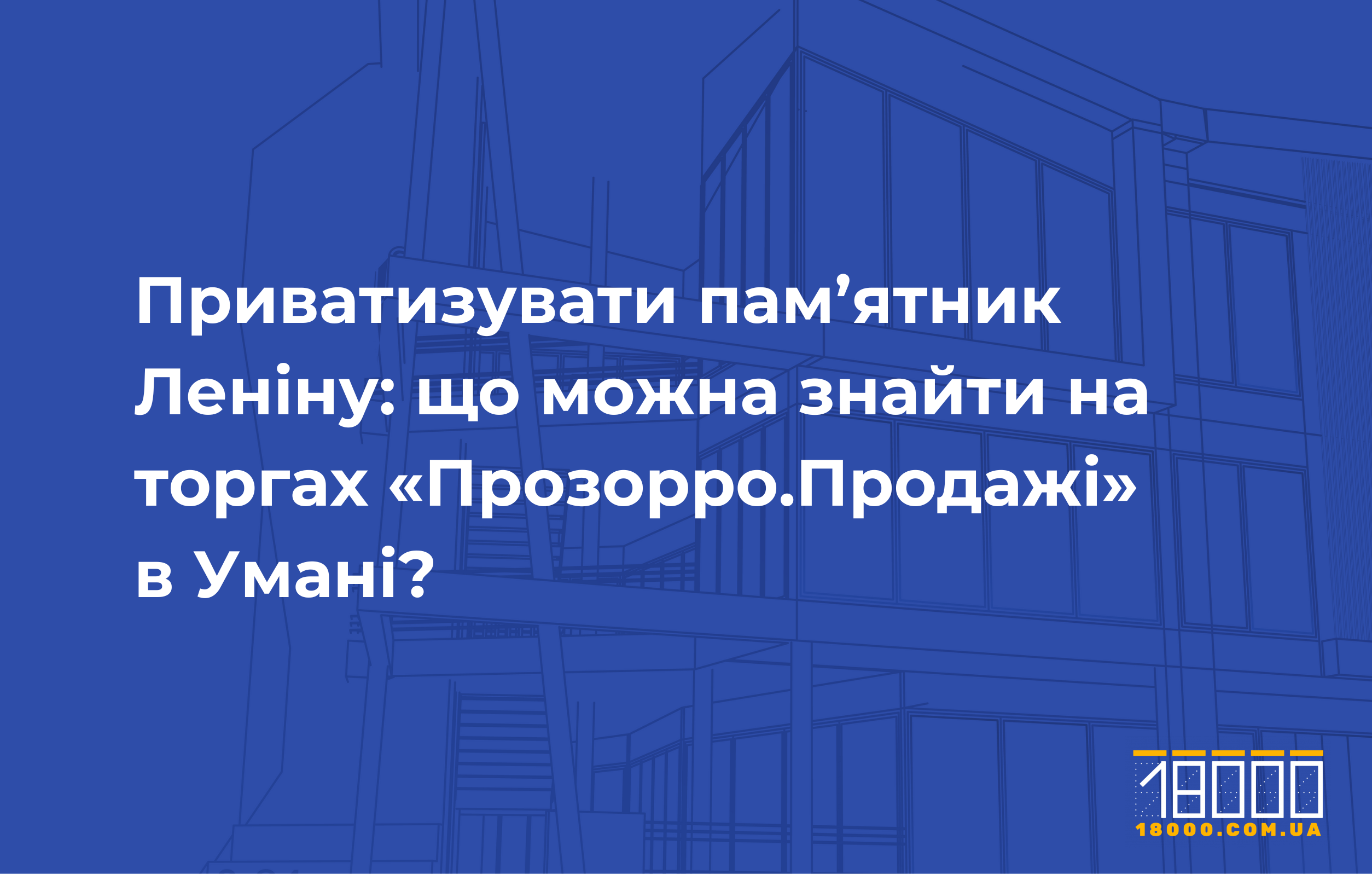 Приватизувати пам’ятник Леніну: що можна знайти на торгах «Прозорро.Продажі» в Умані? Реклама Державна електронна торгова система «Прозорро.Продажі» забезпечує прозорість процесу онлайн‐аукціонів та чесну конкуренцію, а відтак — справедливу ринкову ціну за об’єкти державної або комунальної...