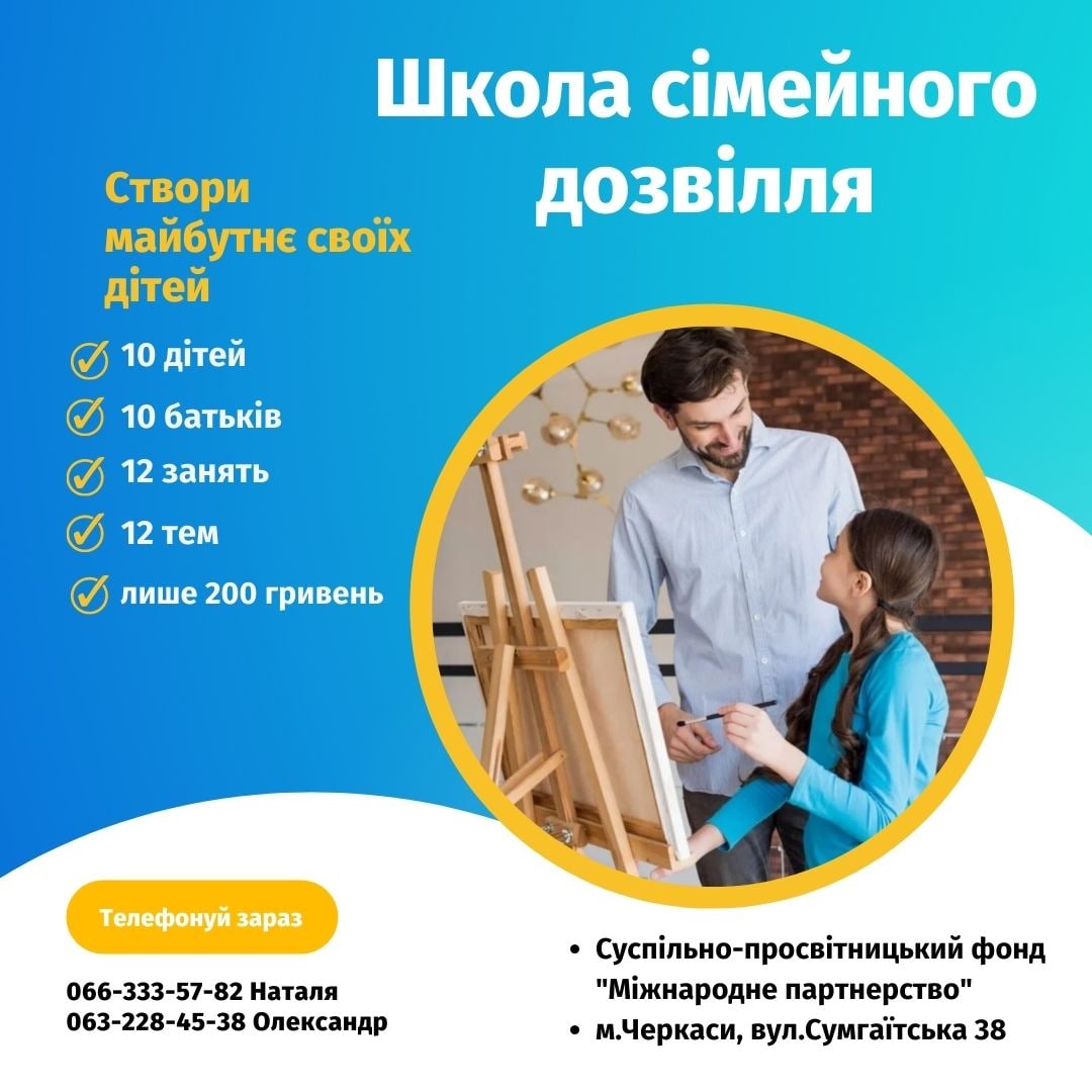 Чудова можливість бути ближче до своєї дитини! Суспільно просвітницький фонд «Міжнародне партнерство» проводить «Школу сімейного дозвілля». Це гарний шанс пізнати дітям свою родину в ігровій формі, а батькам – власних дітей.