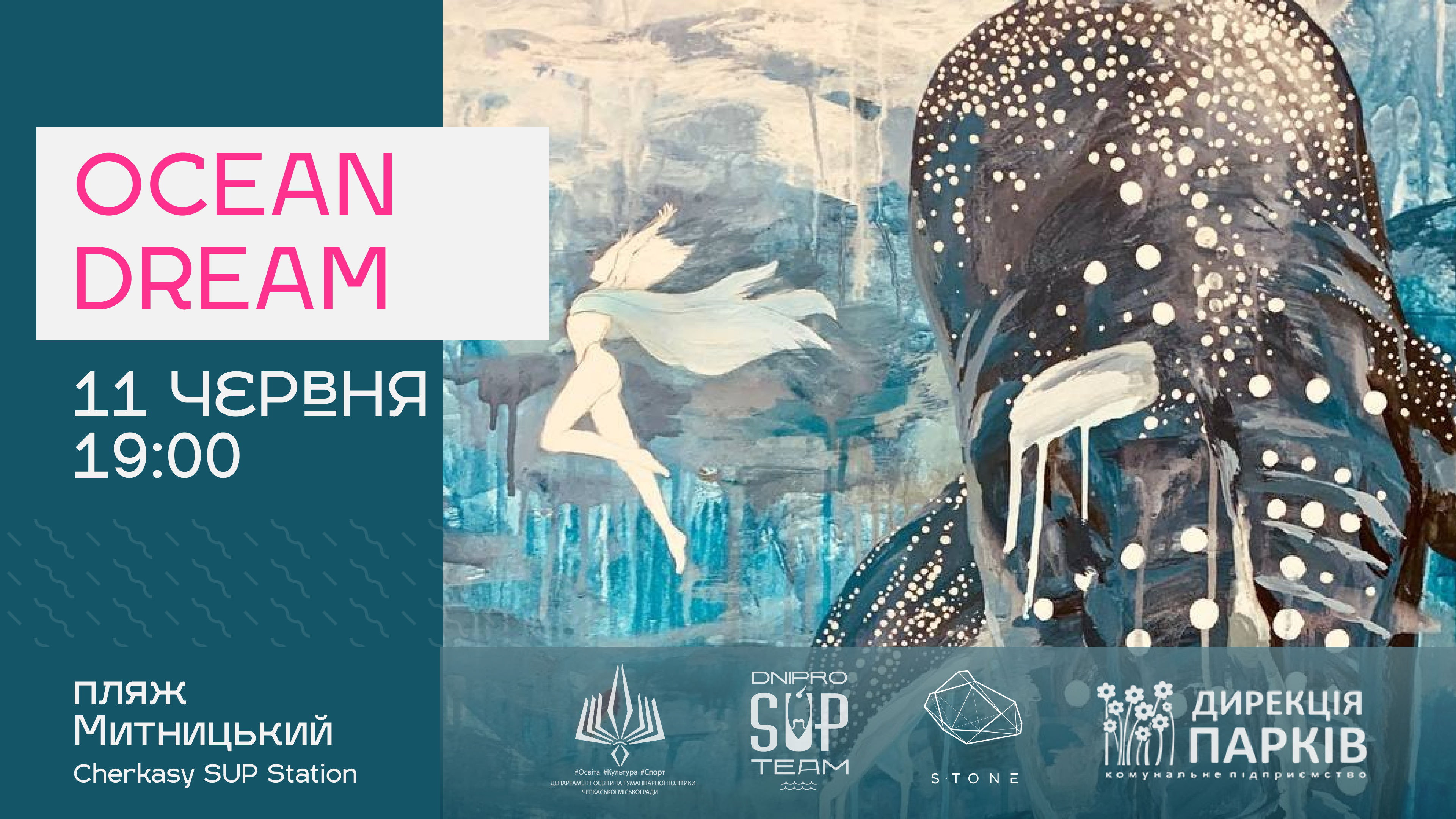 На завершення для гостей виступить черкаський кавер‐бенд #Хвилинамузики. Вхід на вечірку «OCEAN DREAM» для всіх охочих вільний, але організатори просять дотримуватися карантинних правил. Захід відбудеться за підтримки Департаменту освіти й гуманітарної політики ЧМР у межах проєкту «Cherkasy SUP Station‐Event», що є переможцем конкурсу грантів у галузі культури у 2021 році.