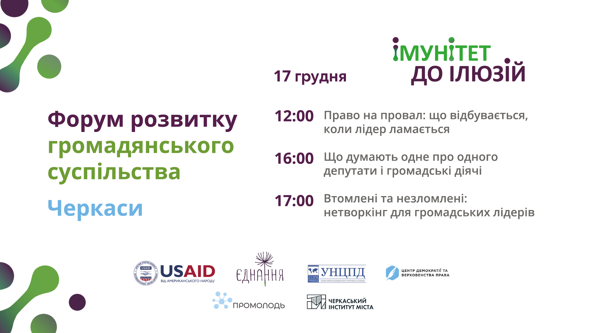 - Втомлені та незломлені: нетворкінг для громадських лідерів.