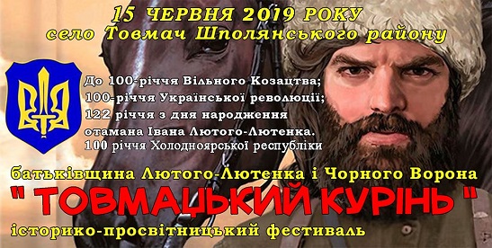 Культурно‐просвітницький фестиваль «Товмацький курінь», у ході якого буде проведено реконструкцію бою холодноярців за участі кращих реконструкторів України, відбудеться у селі Товмач Шполянського району.