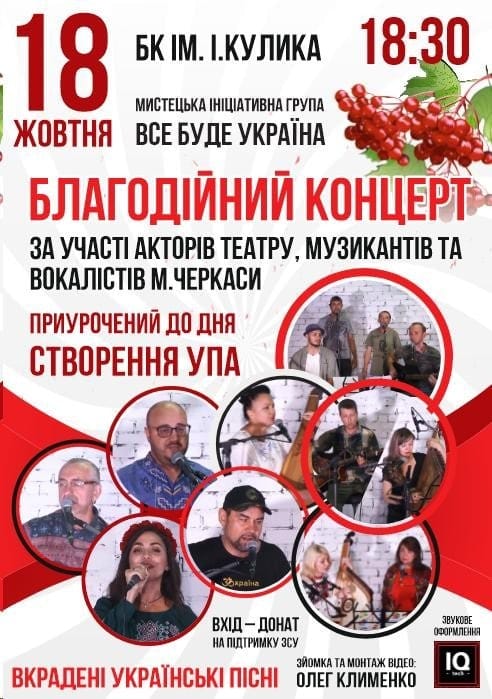 У Черкасах відбудеться благодійний концерт за участі акторів, музикантів і вокалістів Черкас, приурочений до дня створення УПА.