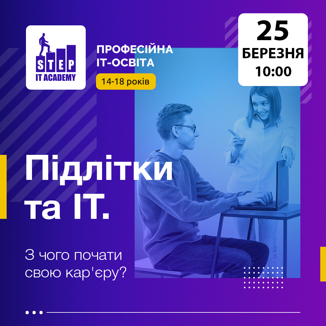 У Черкасах відбудеться подія під назвою «ІТ для підлітків: як почати заробляти навчаючись в школі?». Вона відбудеться 25 березня о 10:00 в IT Step Academy (вул. Святотроїцька, 55)
