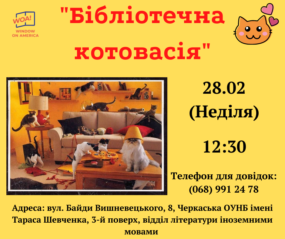 Цієї неділі, 28 лютого, о 12:30 відбудеться котячий захід під назвою «Бібліотечна котовасія».