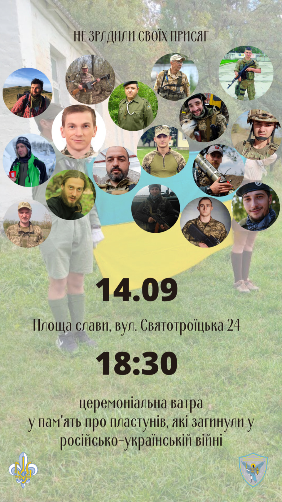 Додамо, захід відбудеться 14 вересня о 18:30 поблизу пам’ятника Полеглим воїнам у російсько‐українській війні на Площі слави, по вул. Святотроїцька 24.