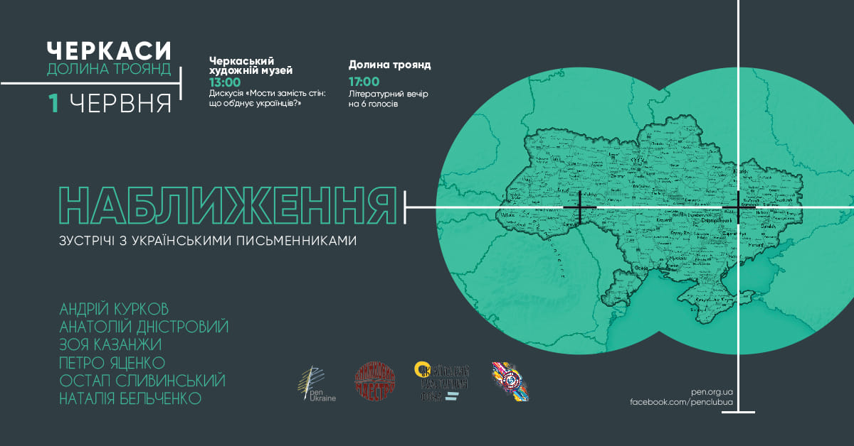 «Наближення» – це літературний проект, у рамках якого члени Українського ПЕН приїжджають до одного з міст, аби розповісти місцевим читачам про сучасну літературу, а також спільно знайти відповідь на питання, що об’єднує українців.
