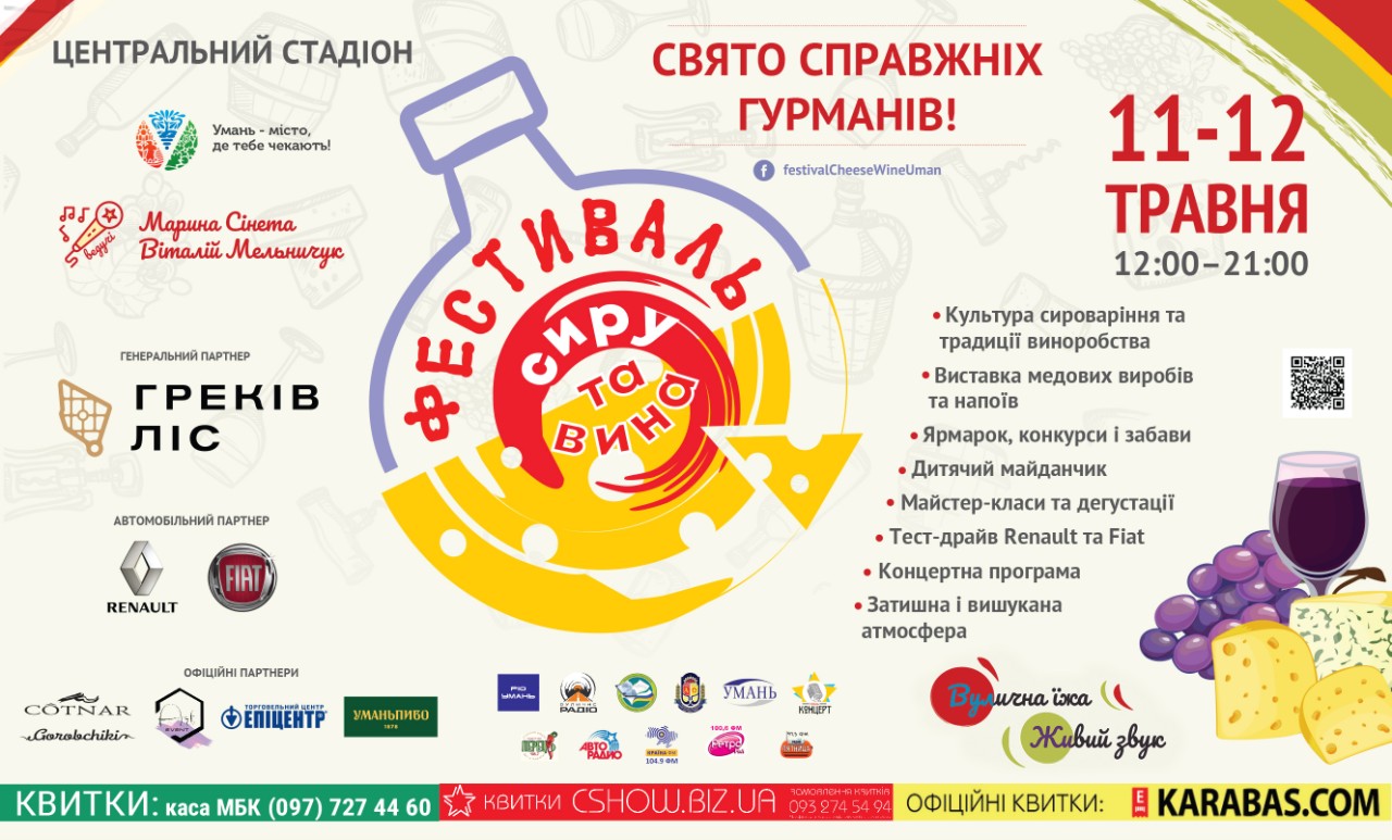 11 та 12 травня в Умані вперше пройде фестиваль сиру і вина. До міста з’їдуться винороби, сировари та виробники меду з усієї України.
