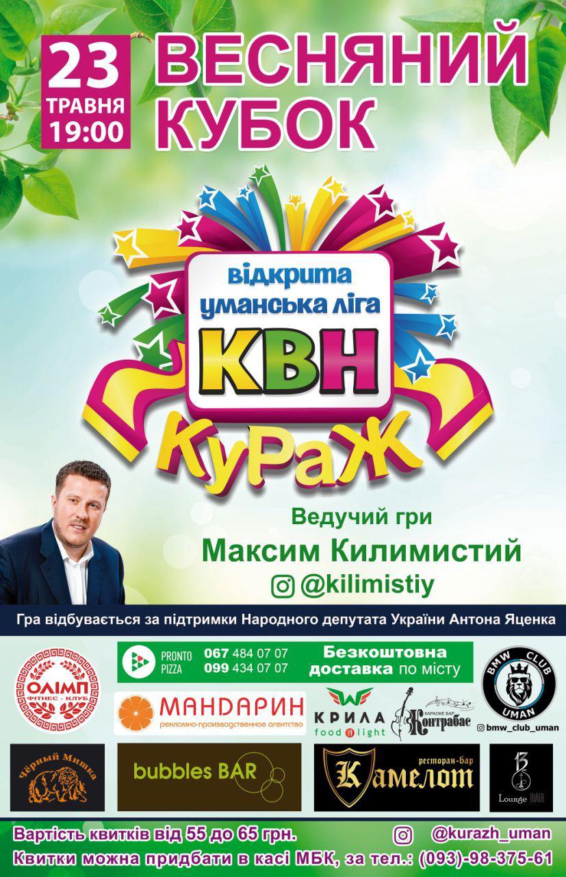 23 травня в Уманському міському будинку культури відбудеться гра КВН за Весняний Кубок.