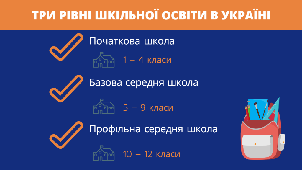 - середні (1–12 класи), тобто ті, що проводять увесь курс середньої освіти;