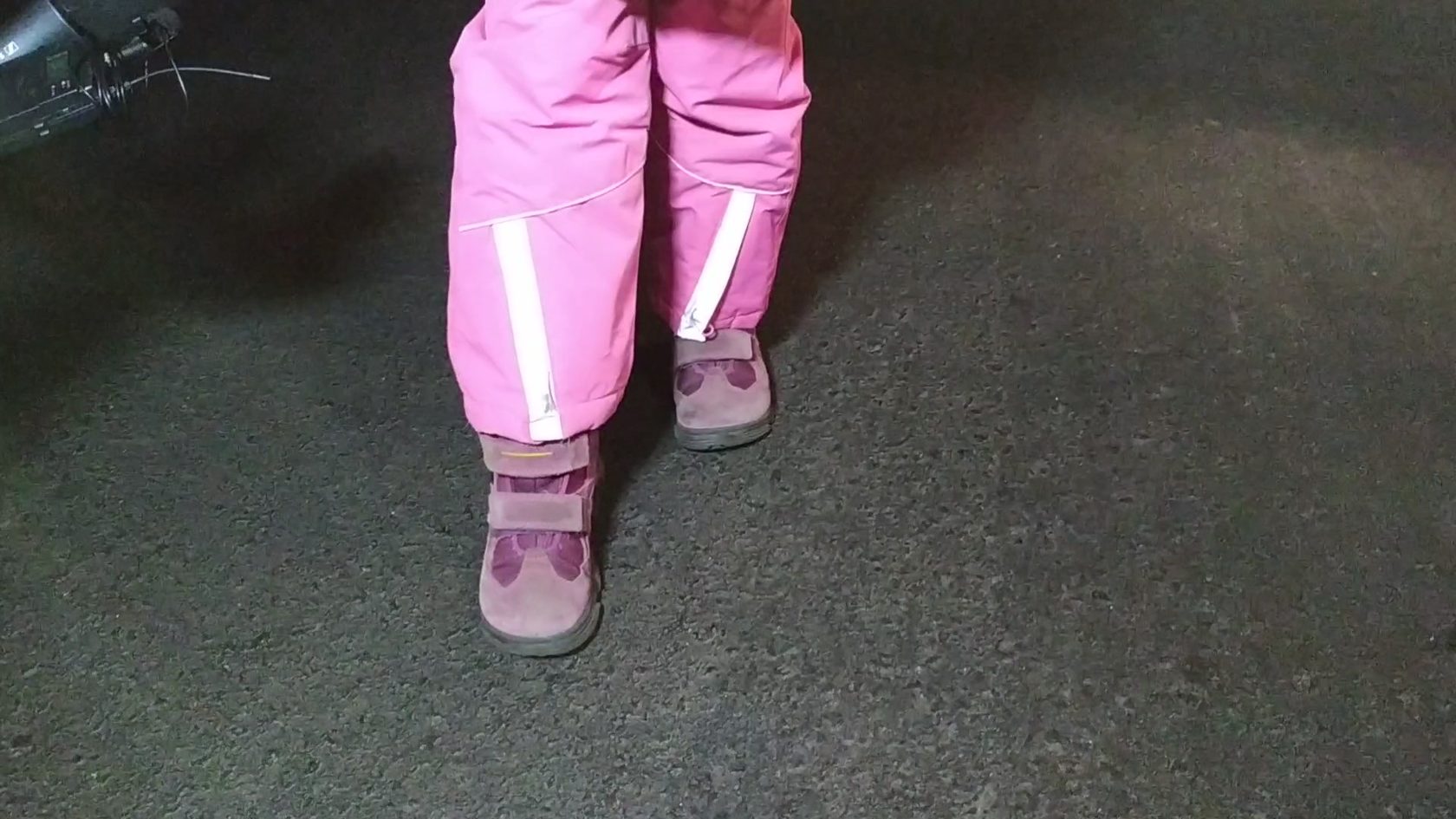 – Ось наступний, вже зі світловідбиваючим елементом на одязі. Ми його побачили метрів на 50, – коментує Артем. – А метрів за 70 стоїть дитина, у неї на ногах світловідбиваючі стрічки.