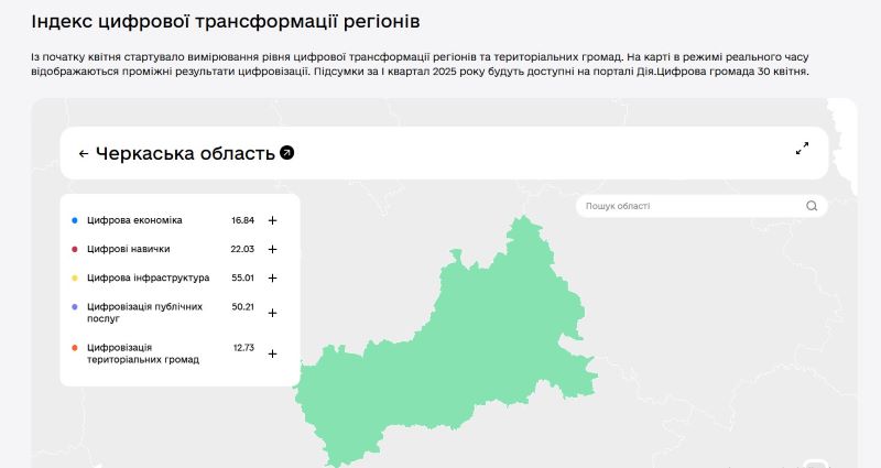 Про це повідомили у відділі цифрового розвитку, трансформацій та цифровізації Черкаської ОВА.