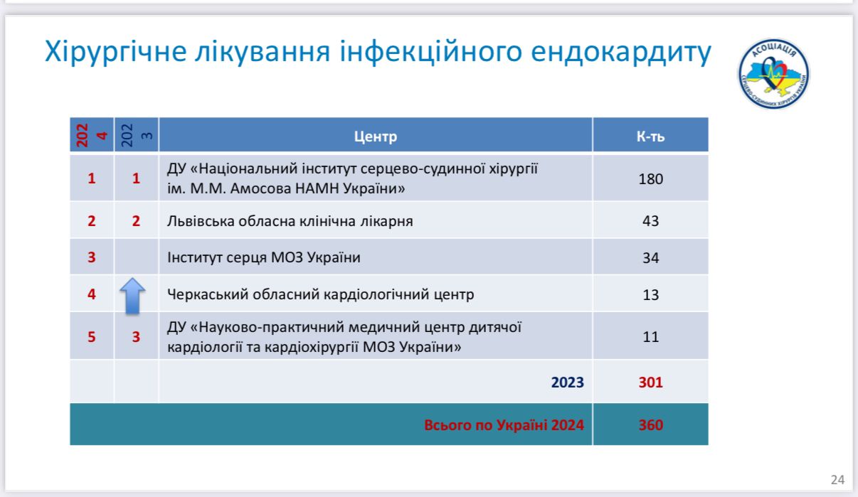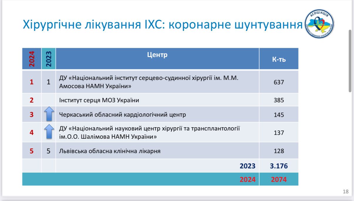 Так, черкаський медзаклад посів третє місце з лікування ішемічної хвороби серця і четверте місце з лікування інфекційного ендокардиту.