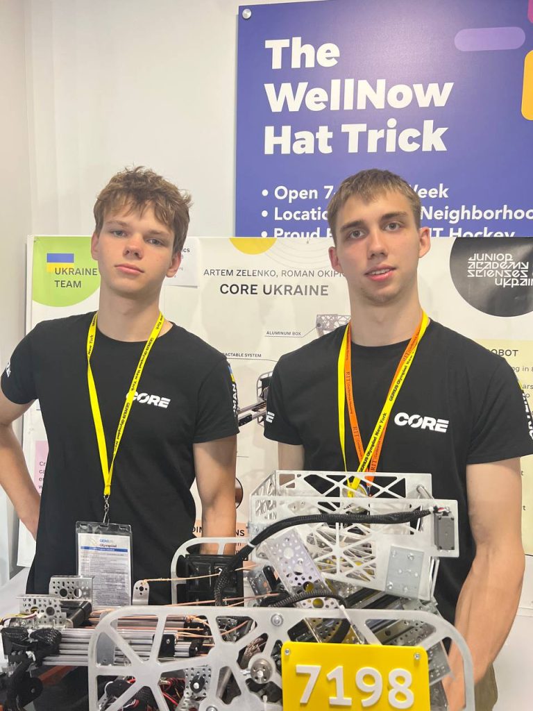 Як йдеться в дописі, переможцями стали учні Черкаського фізико‐математичного ліцею Артем Зеленько та Роман Окіпняк. Вони вибороли золото в номінації «Робототехніка» з проєктом «CORE Ukraine». Їхнім науковим керівником є Віталій Кадуха.