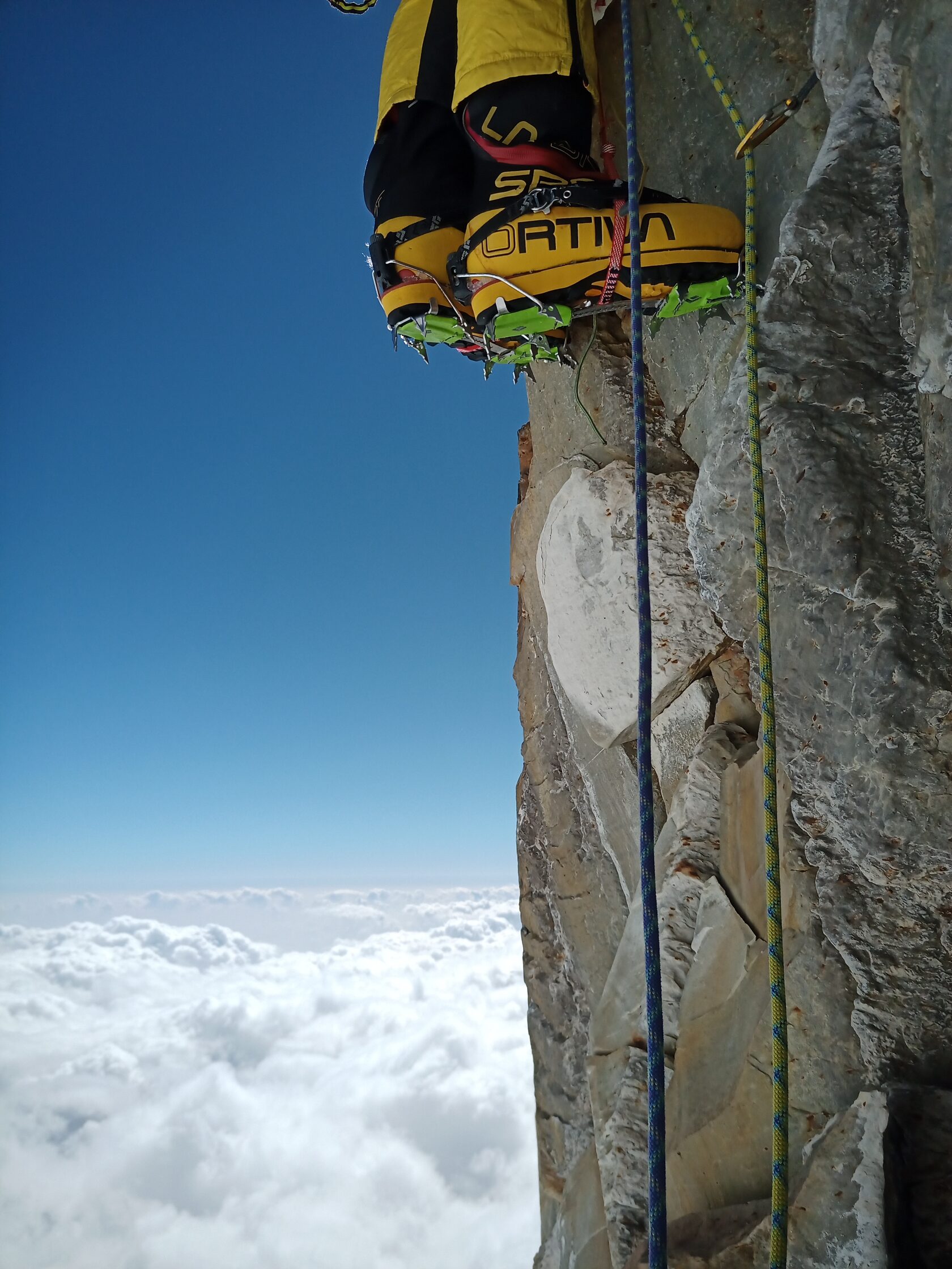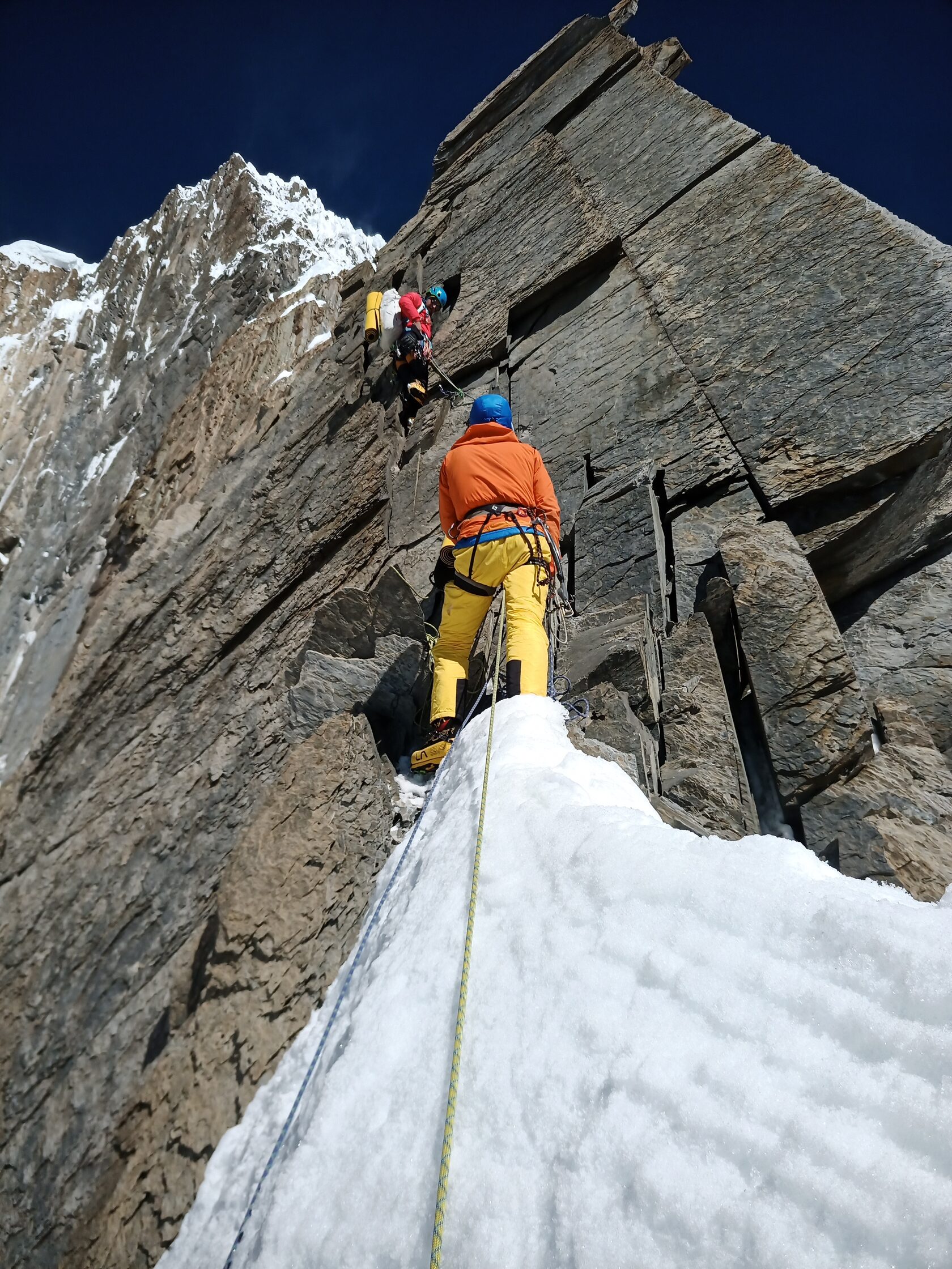 - Є, звісно, ділянки, де можна пересуватися одночасно – це сніжні схили або прості скелі. Тому, якщо це не суперечить нормам безпеки й відповідає рівню спортсмена, то можна лізти одночасно. Якщо ж ділянки складні, то лізе спочатку один член команди, а потім наступний, – пояснює В’ячеслав.