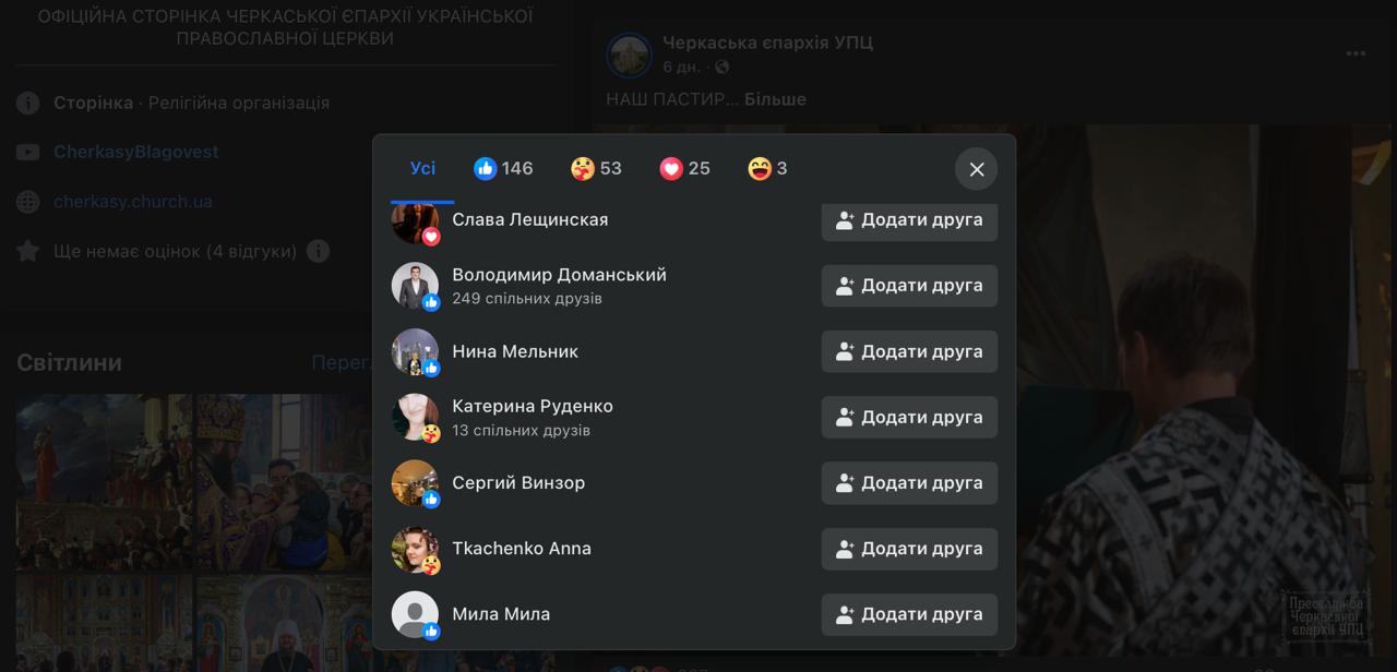 Зі сторінки депутата Черкаської обласної ради Володимира Доманського, якого обирали від партії опзж, «уподобують» дописи про нібито переслідування митрополита Феодосія (Снігірьова). Сам Доманський каже, що не веде свою сторінку у фейсбуці.