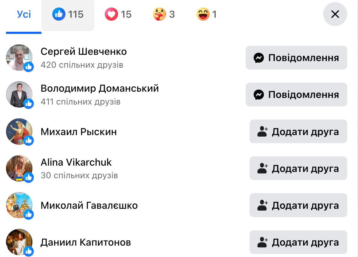 Серед постів, які «вподобали» від Доманського – публікація підтримки Феодосію. Там відзначають його «мужнє терпіння», митрополита УПЦ мп називають «пастирем з великої літери», а через суд в авторів посту «серце стискається і очі наповнюються сльозами».