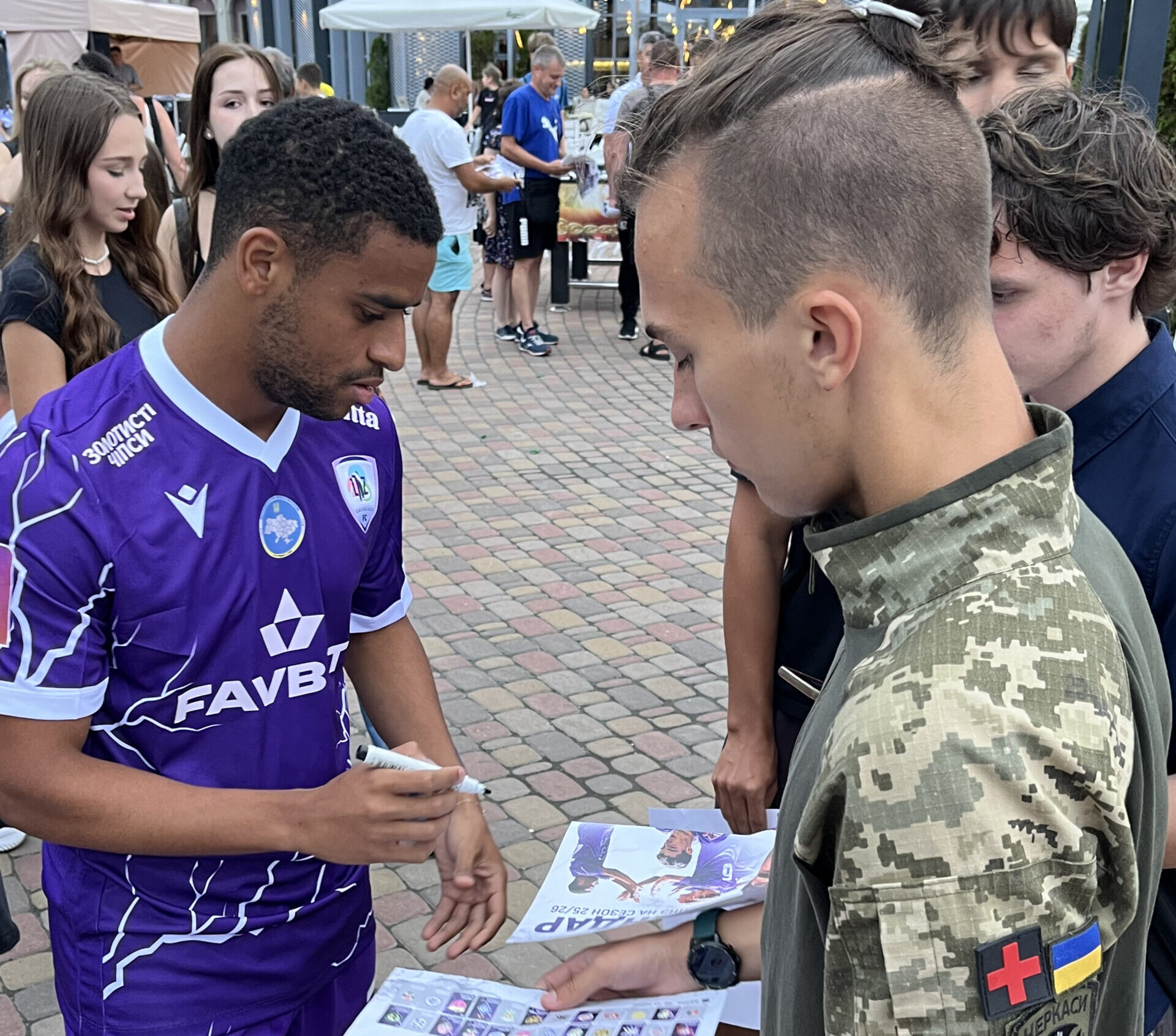 - Я слідкую за ЛНЗ ще з початку їхнього створення, тому, звісно, не міг оминути увагою цю подію. Вболіваю за всіх футболістів клубу, а сьогодні хочу з ними поспілкуватися, а ще – виграти футболку з підписом одного з них, – розповідає учасник заходу та військовий Олександр Мусієнко.