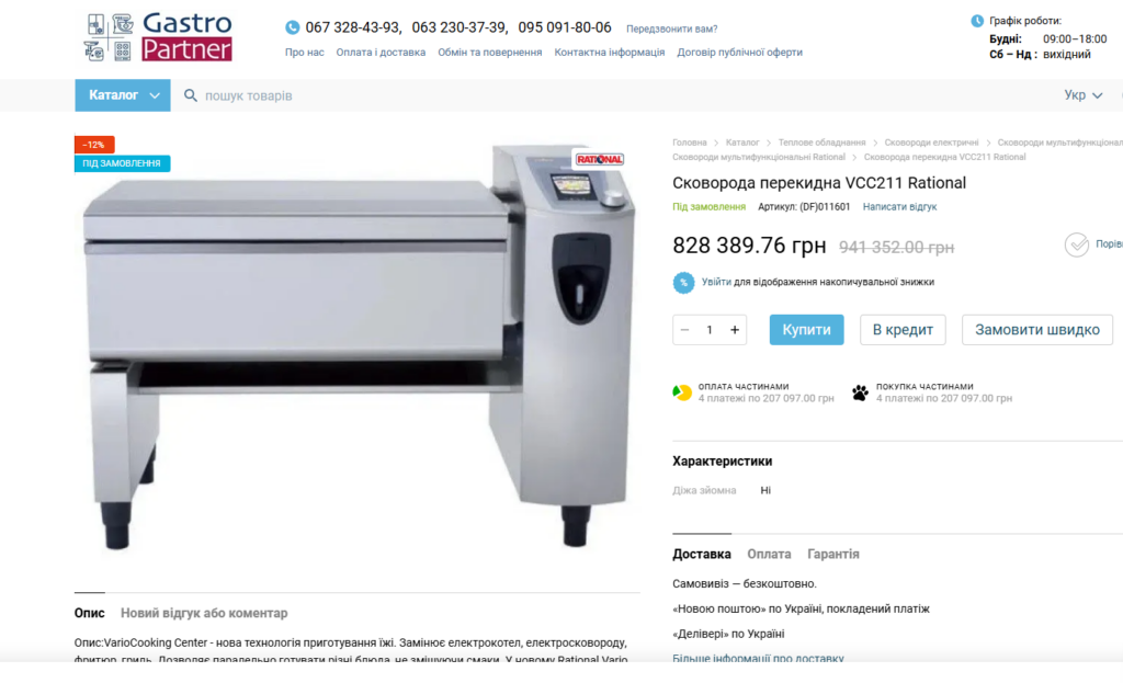 Найкоштовнішим у вартості ремонту та переоснащення харчоблока є мультифункціональна перекидна сковорідка (спеціальне кухонне обладнання) німецького виробництва «Rational vcc211», ціною у майже 1,2 млн грн (з ПДВ). Водночас на профільних сайтах можна знайти оголошення з продажу подібних за 800–900 тисяч гривень. Схожа ситуація і з ще однією «вартісною» позицією – картоплечисткою Filmar PPF10, яка, відповідно до кошторису, обійдеться у майже 150 тисяч гривень (з ПДВ). Водночас профільні ресурси продають подібне обладнання по 60–70 тисяч гривень.