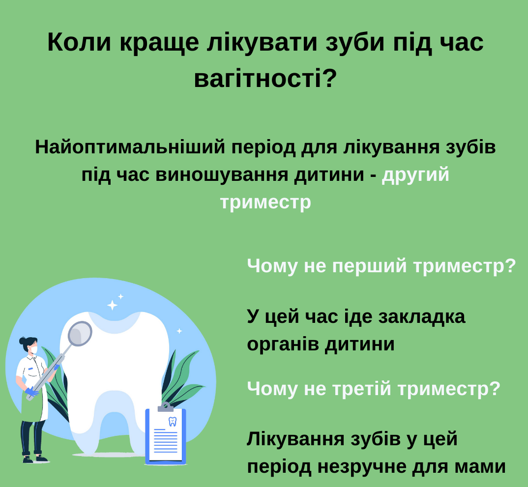 Водночас існують терміни вагітності, в які лікування зубів є найбільш оптимальними. Зокрема, це другий триместр.