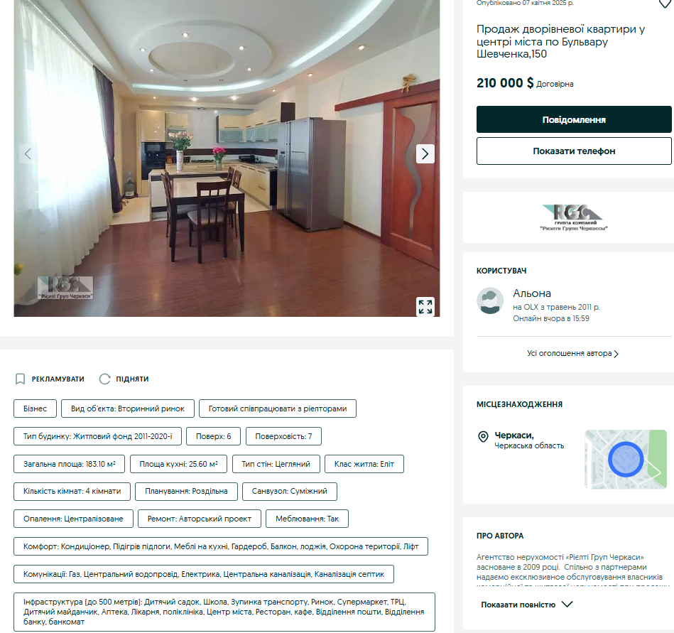 Будинок розташований за кілька кварталів від центру і роботи прокурора. Його мати купила наприкінці 2022 року. Вартість за декларацією – майже 1,5 млн гривень разом із землею. У власності жінки з ідентичним прізвищем, ім’ям і по батькові ще квартира на Казбеті в Черкасах і в новому ЖК біля центру. Та більше 4 гектарів землі на Шполянщині.