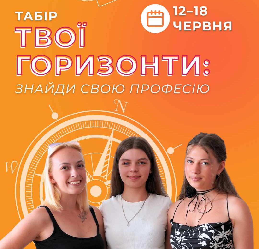 Табір «Твої горизонти: знайди свою професію» влаштовують для молоді від 14 до 20 років, аби допомогти визначитися з професією. Під час кар’єрного табору учасників знайомитимуть з різними професіями, проведуть екскурсії в організації Черкас та тимбілдинги.