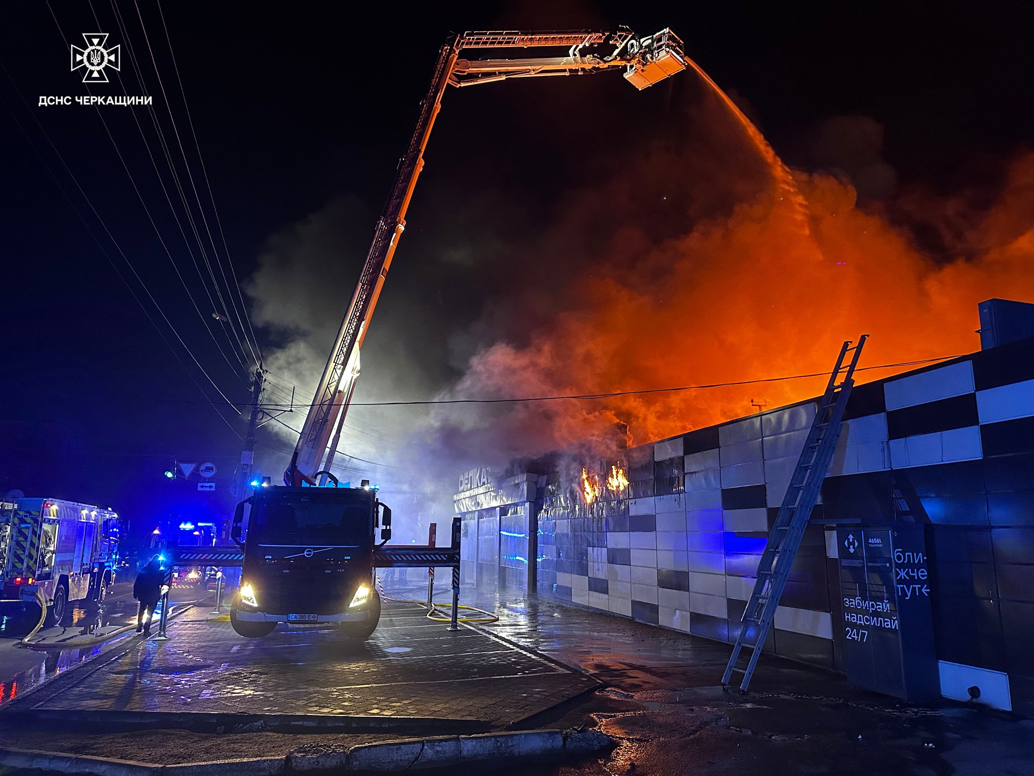 У Черкасах близько 03:00 години ночі виникла пожежа в магазині «Делікат» навпроти Черкаського національного університету. До гасіння залучили 10 одиниць техніки.