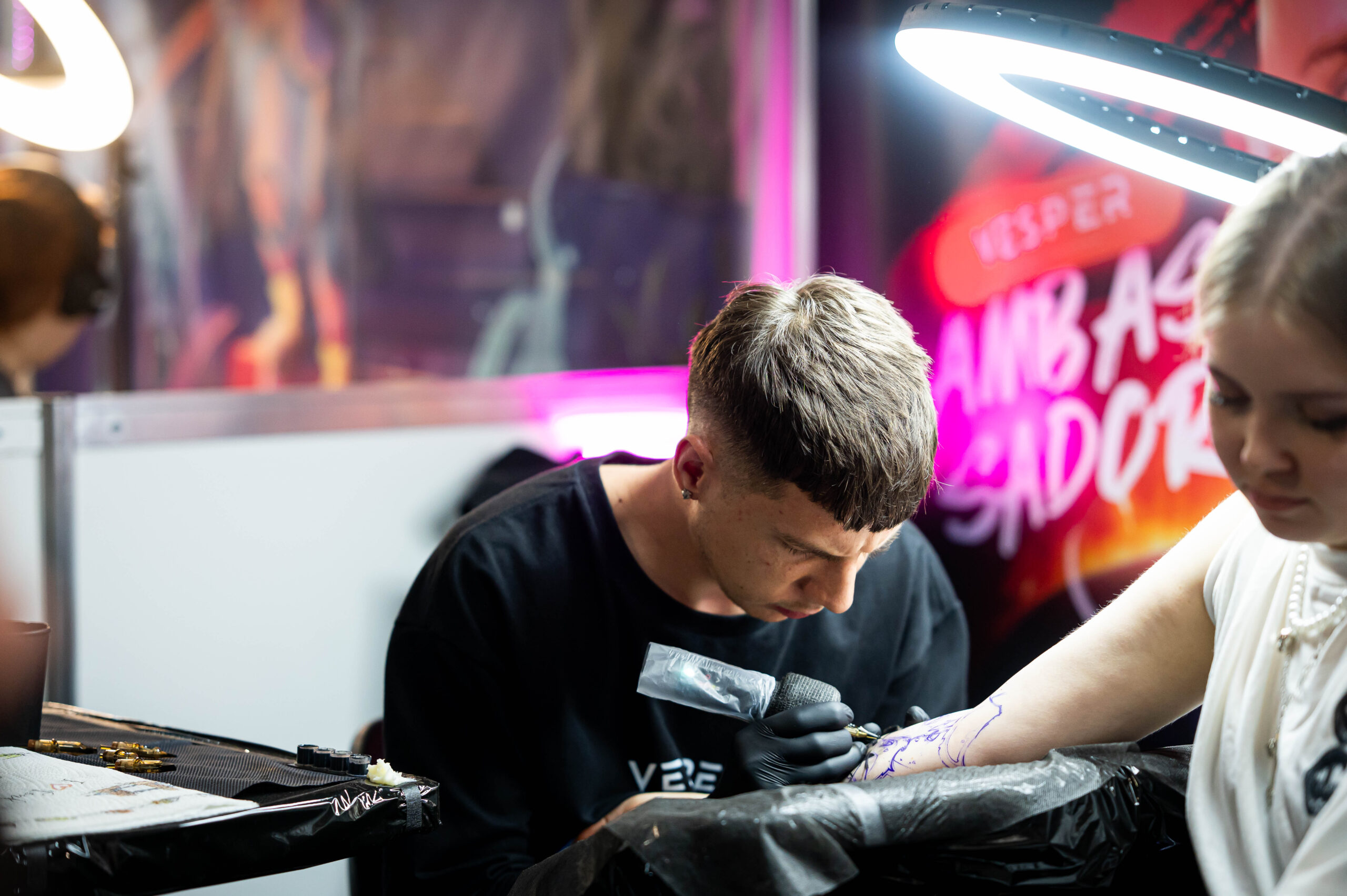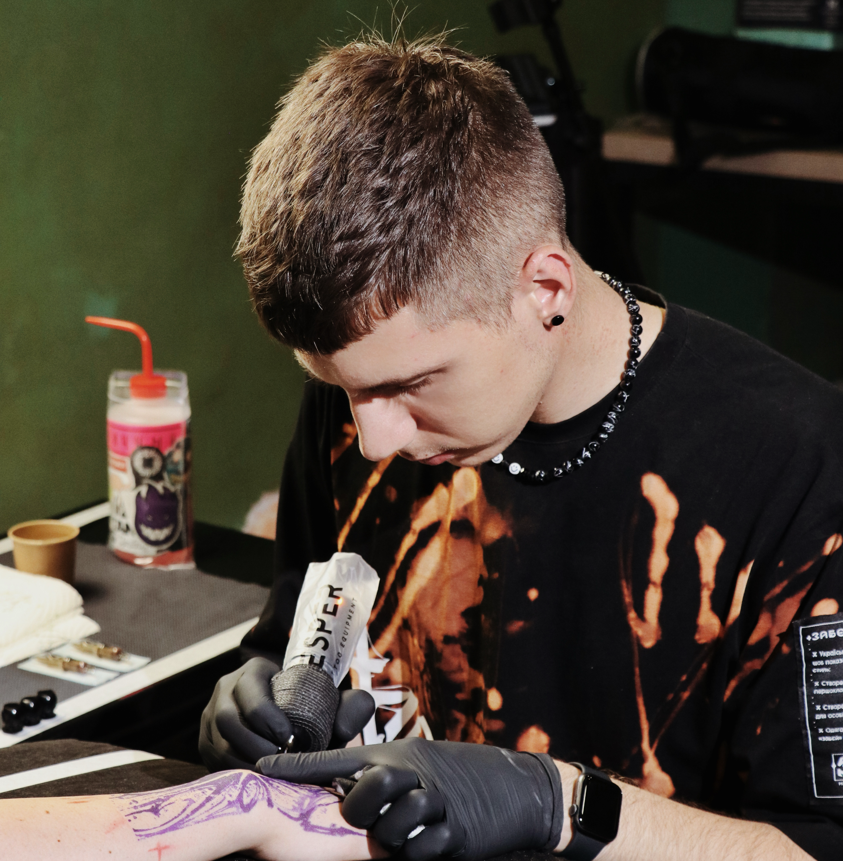 Сергій Данильченко створює тату на фестивалі. Фото з архіву Сергія