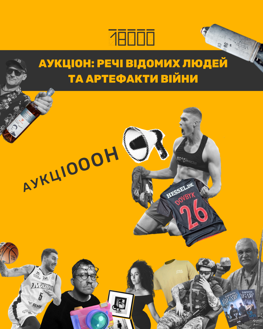 Найдорожчими лотами аукціону стали вечеря з командою «18000» (100 тисяч гривень), рукавиця Олександра Усика з автографом (50 тисяч гривень) та деактивований снаряд із Харкова (40 тисяч гривень).