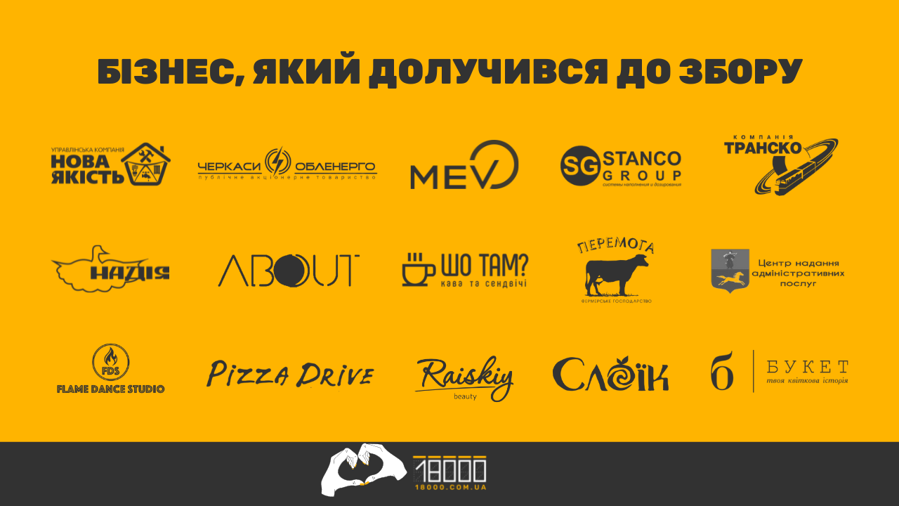Загалом до нашого мегазбору «Черкащани для черкащан» долучилися понад півтори тисячі донаторів: це і фізичні особи, і представники бізнесу.