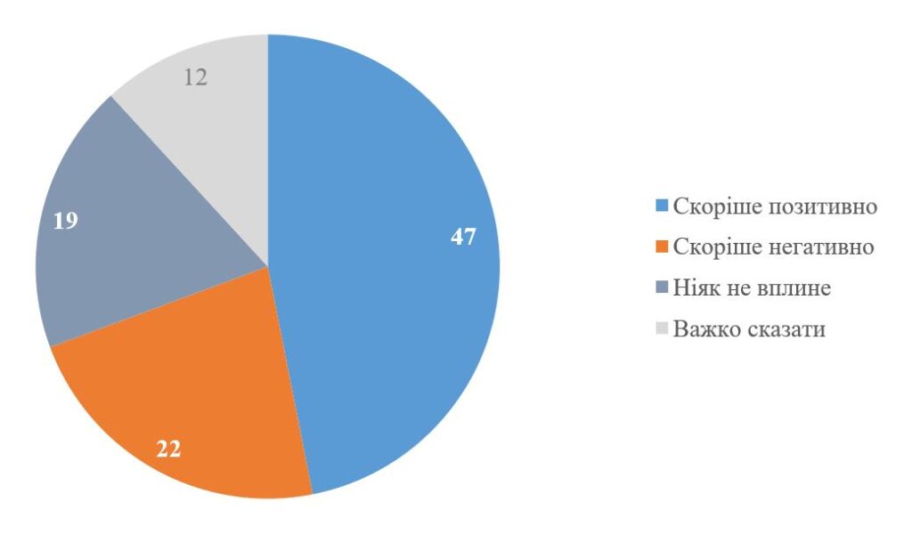Крім цього, 19 % відповіли, що підписання угоди не вплине на Україну. Решта 12 % не змогли визначитися з думкою.