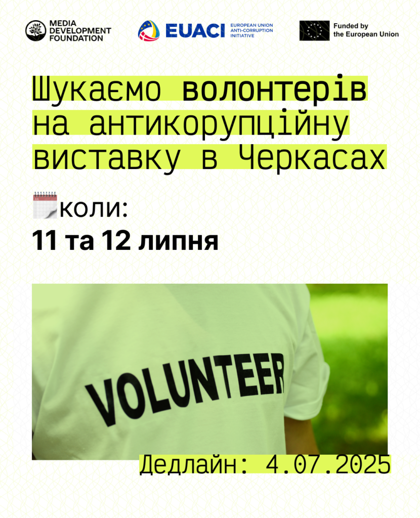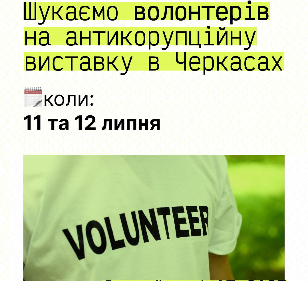 На антикорупційну виставку «Розслідувальна журналістика в дії», яка відбудеться Черкасах, шукають волонетрів.