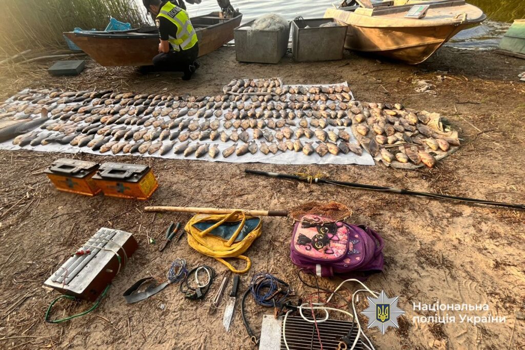 Двох жителів села Леськи, які незаконно ловили рибу, затримали поліцейські в суботу, 31 травня. У порушників вилучили заборонені знаряддя лову, серед яких два акумулятори, два електролови, електровудку, а також понад 300 одиниць риби різних видів.