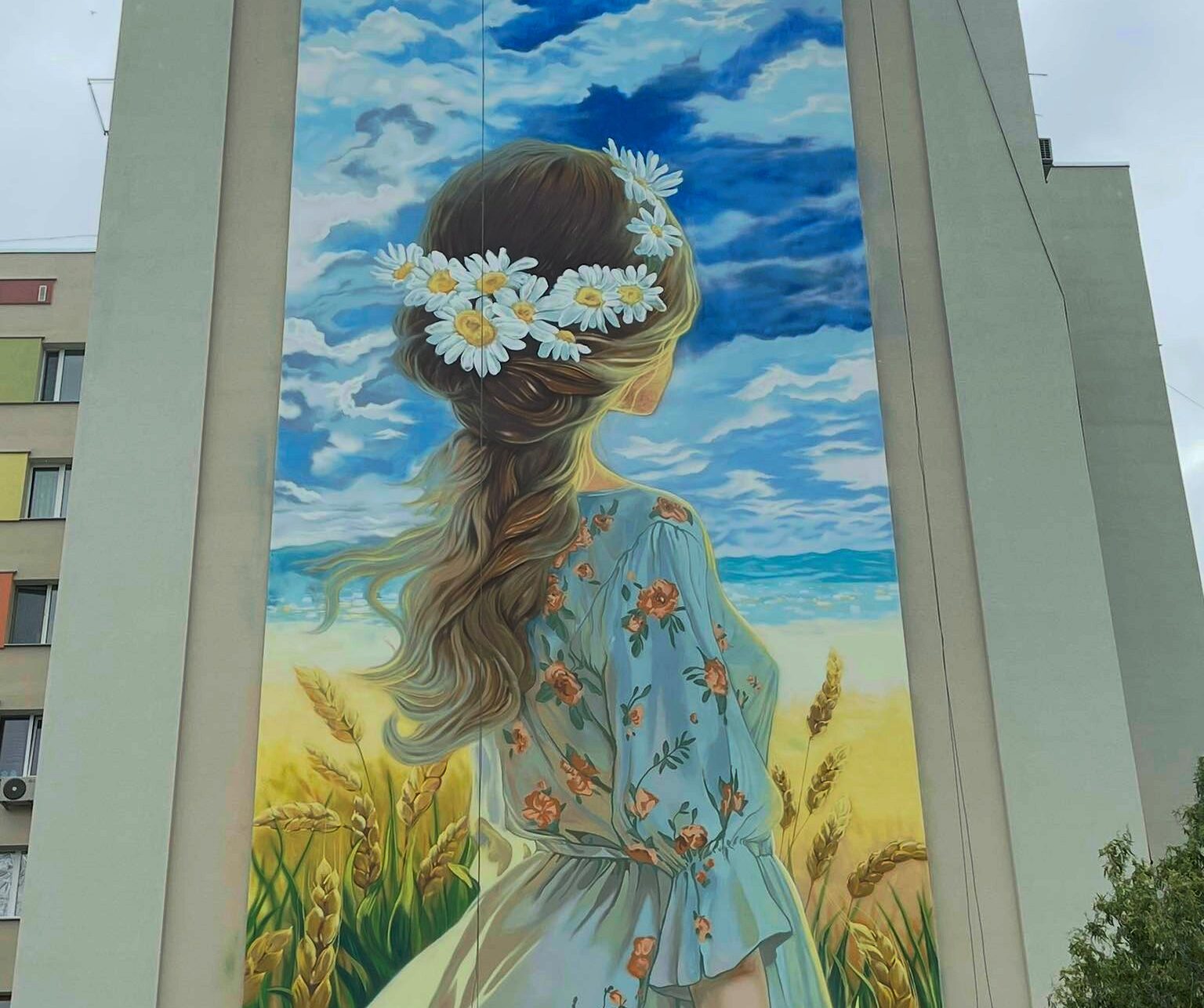 У Черкасах у районі Лісовий створили мурал на дев’ятиповерховому будинку, якому понад 40 років. Малювали стінопис протягом тижня.