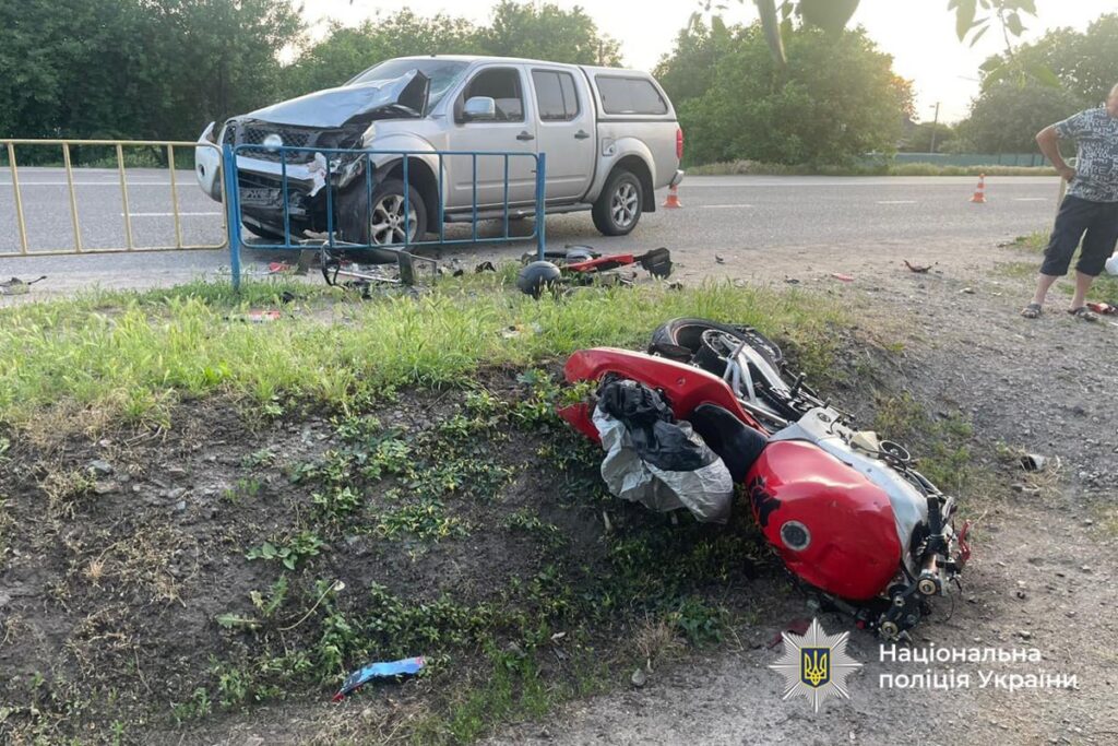 Попередньо поліцейські встановили, що 59‐річний водій автомобіля «Nissan Navara» не надав перевагу в русі та зіткнувся із мотоциклом «Suzuki GSX».