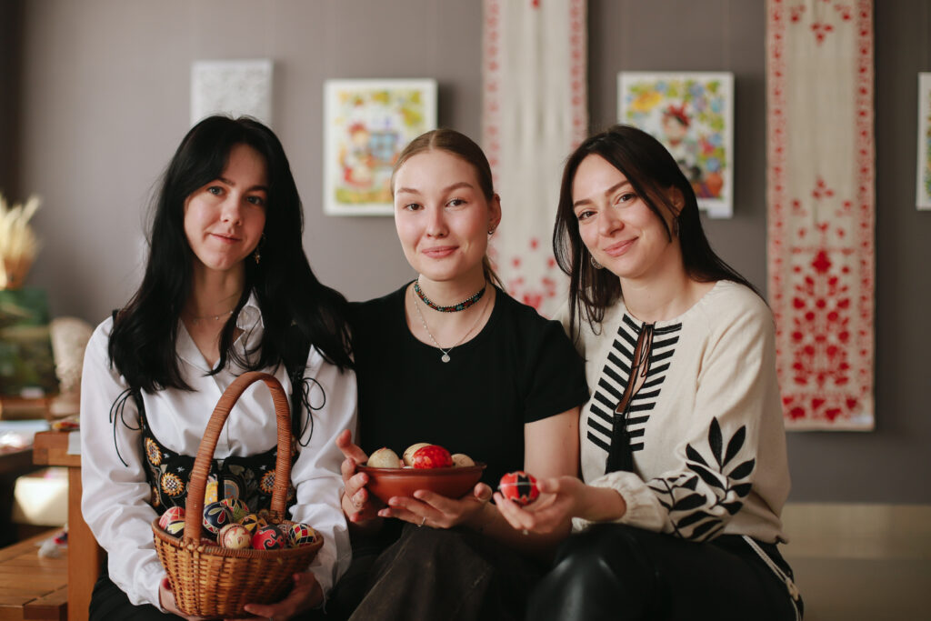 Команда дівчат, які проводили майстер‐класи з писанкування. Зліва направо: Аліса Мілевська, Наталя Кравець та Альона Головата