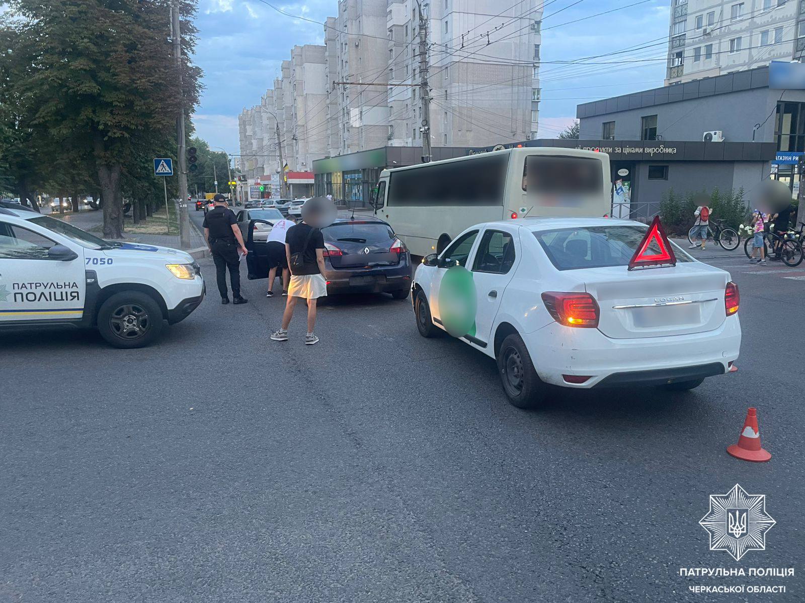 У Черкасах на перехресті вулиці Пастерівська та бульвару Шевченка сталася дорожньо‐транспортна пригода за участі трьох автомобілів.