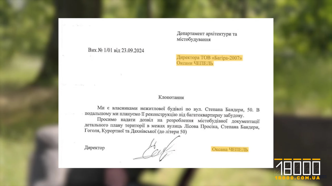 У коментарі «18000» Олена Слободяник підтвердила, що жодних листів до мерії щодо забудови території вона не надсилала.