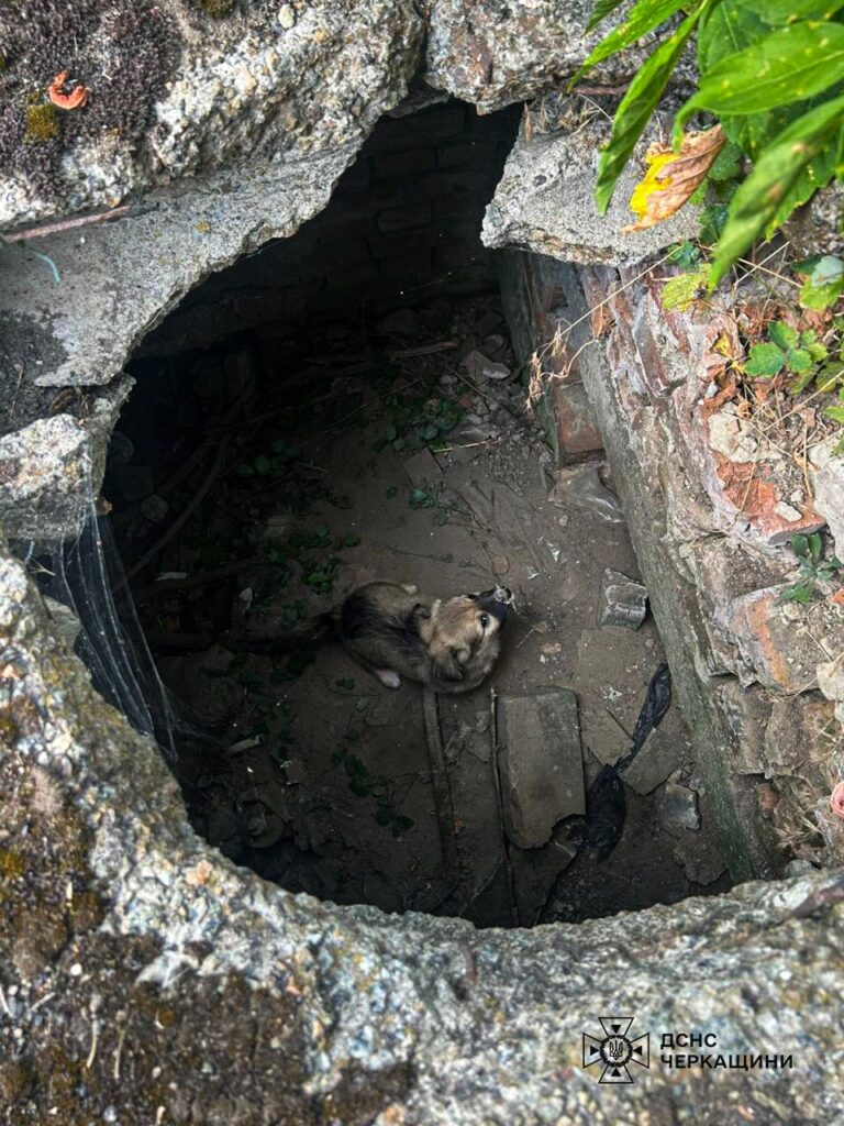 Песик на ім’я Річик впав у двометрову яму біля лікарні у Звенигородці. Йому на допомогу прийшли рятувальники.