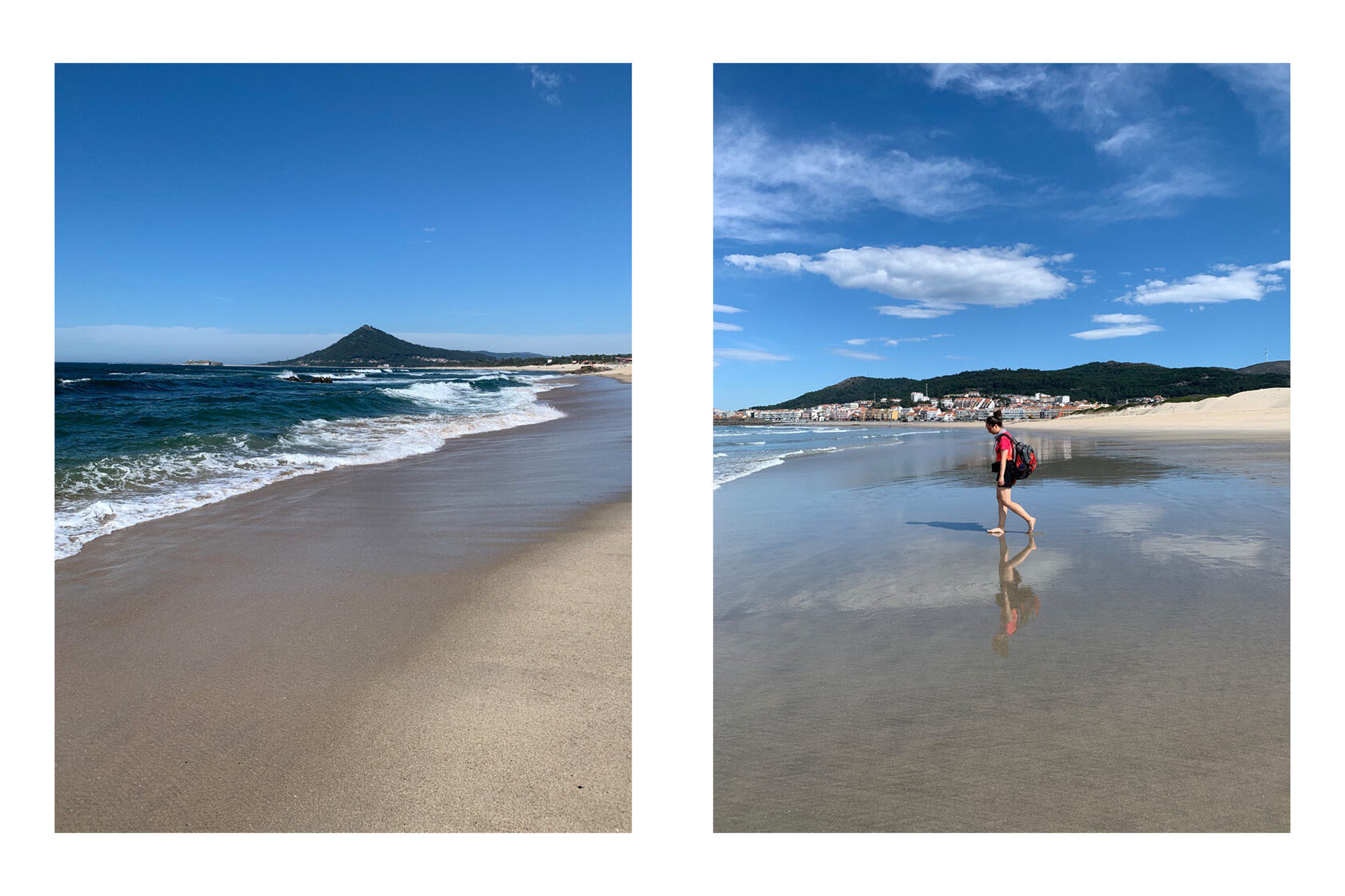 Ми зустріли дідуся, який кожен ранок їздить на велосипеді з Португалії до Іспанії. Він добре знав англійську й підказав нам шлях, який веде до дуже гарного пляжу. Дорогою ми вже трохи засумнівалися в правдивості його слів, бо йшли дуже довго й не бачили пляжу. Але потім здивувалися, бо там був дуже гарний піщаний берег і океан, хоч зазвичай вихід до води там кам’яний. Здається, там саме копали кар’єр, через що утворилися мальовничі піщані дюни. Це був наш останній день у Португалії