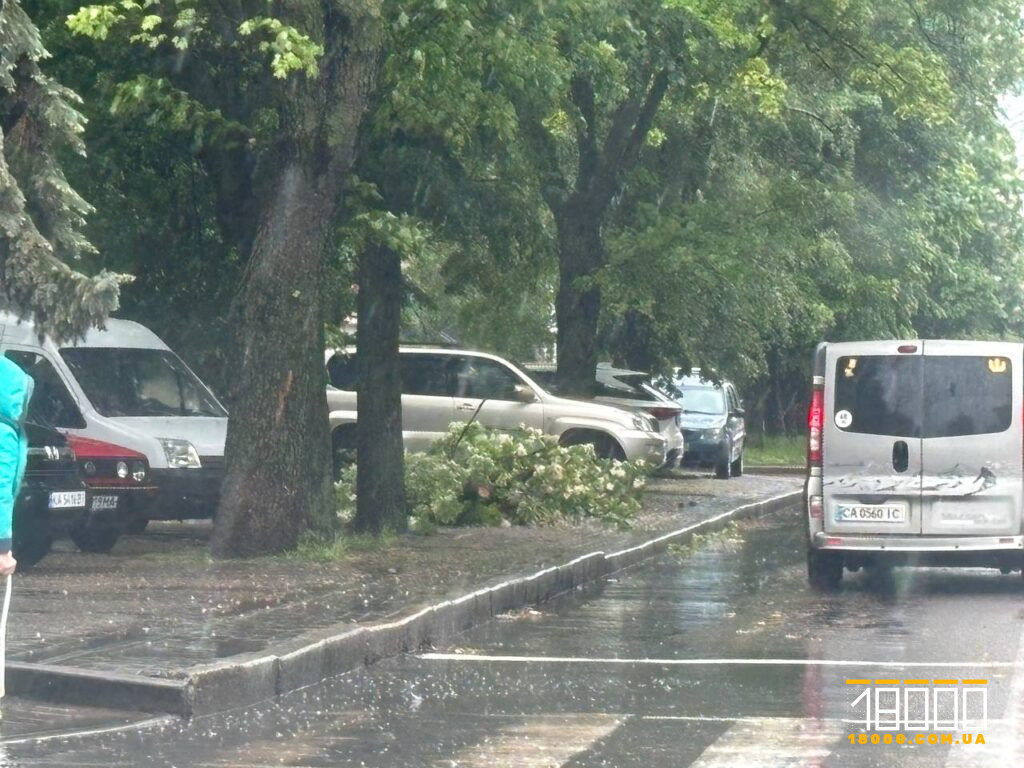 На перехресті бульвару Шевченка та вулиці Небесної Сотні у Черкасах впала гілка дерева. Вона пошкодила дроти та два автомобілі.