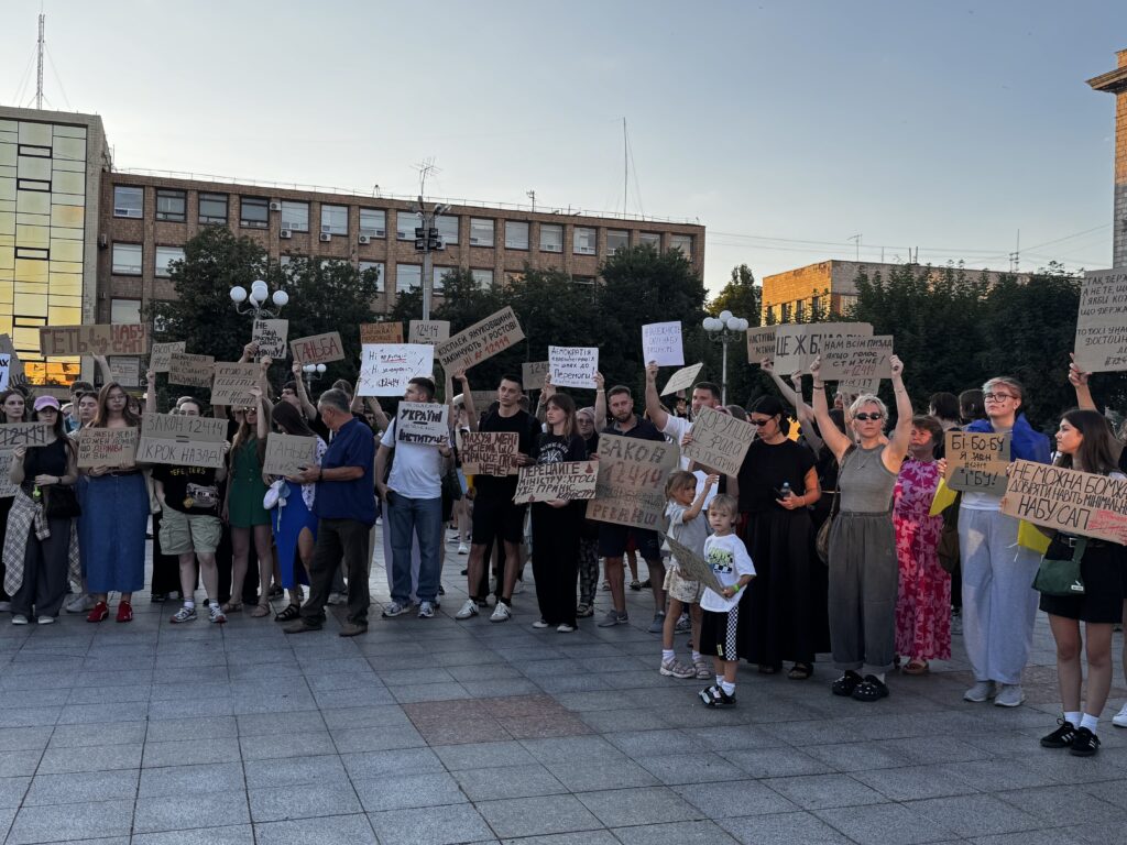 Акція проти законопроєкту № 12414, який зменшує повноваження актикорупційних органів НАБУ і САП, триває у Черкасах. На Соборній площі зібралися кілька сотень людей.