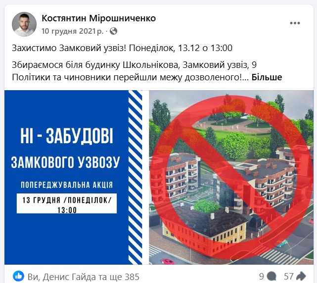 Заклик виходити на мітинг про забудови Замкового узвозу