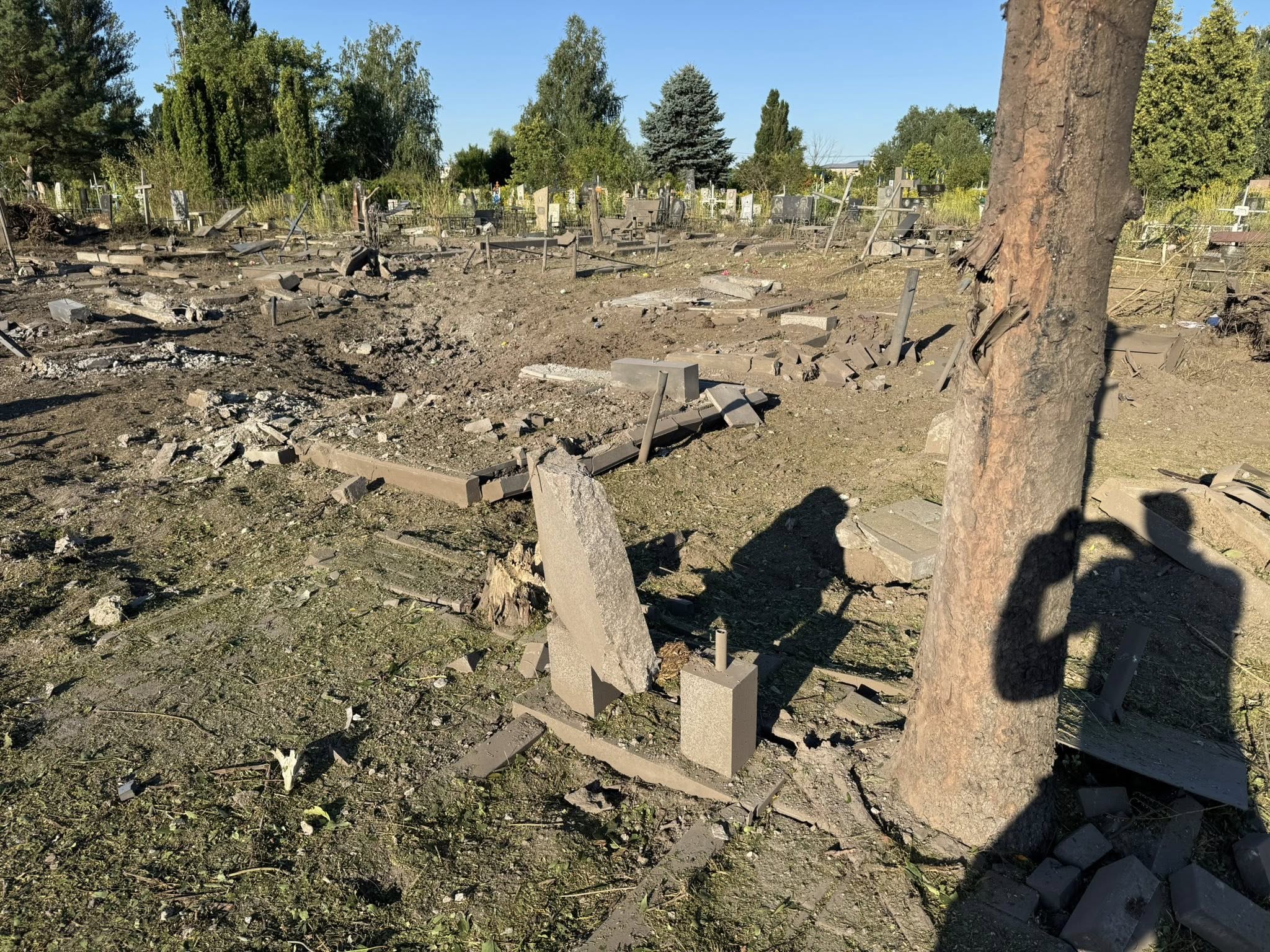 Пошкоджений після ракетної атаки цвинтар. Фото: мер Анатолій Бондаренко