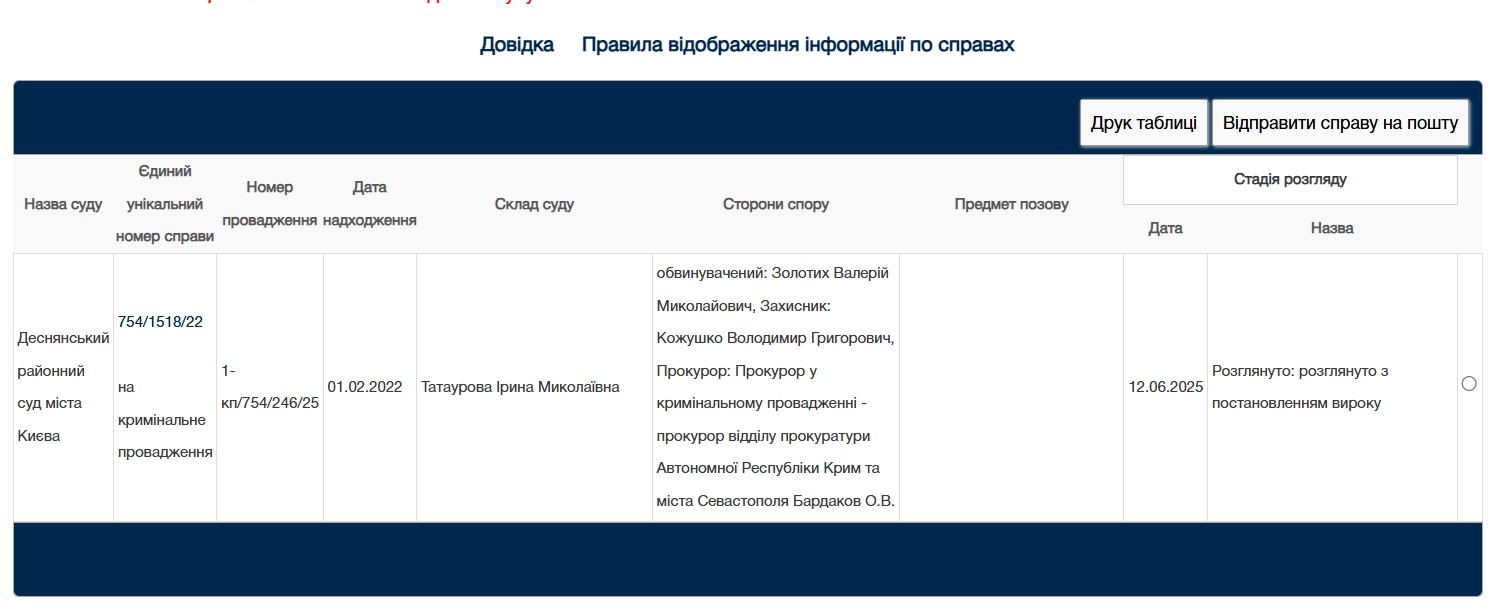 Як дізнався «18000» з порталу «Судова влада», обвинуваченого звати Валерій Золотих. Він раніше судимий не був. У матеріалах справи зазначили, що чоловік на судове засідання, де оголошували йому вирок, не з’явився.