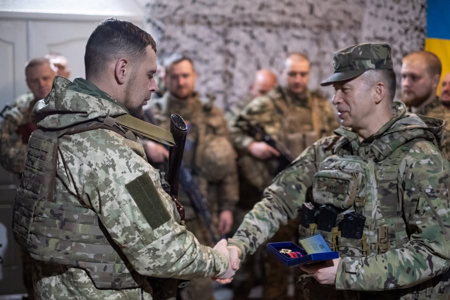 Головнокомандувач ЗС України Олександр Сирський нагородив військовослужбовця 129‐ї окремої бригади ТрО Владислава Марченка «Золотим хрестом».