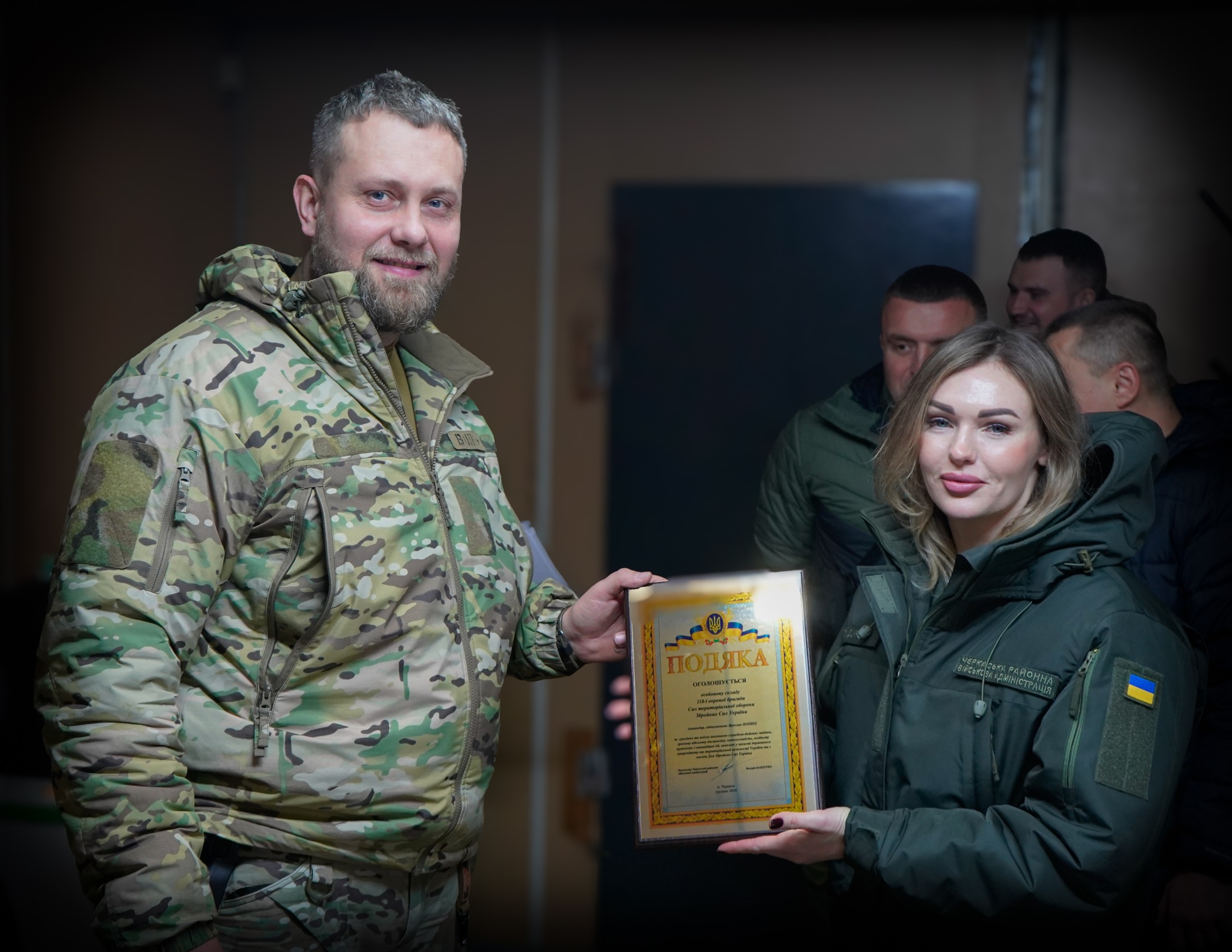 Комбригу 118 бригади вручають подяку. Фото: 118 окрема бригада Сил територіальної оборони ЗСУ