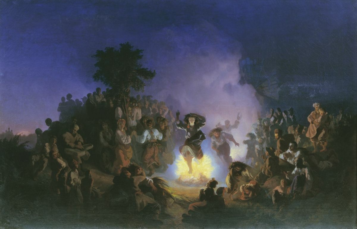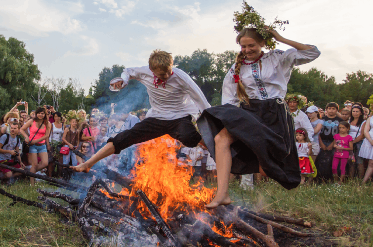 А за записами українського етнографа Олекси Воропай, перед тим, як стрибати через вогнище, хлопець знімав із дівчини вінок і клав собі на голову, а свою шапку