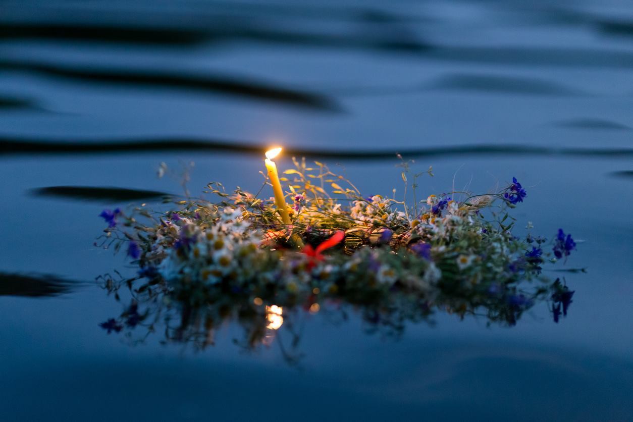 Перед тим, як пускати вінок на воду, дівчина діставала із‐за пазухи свічку та кріпила її до нього.
