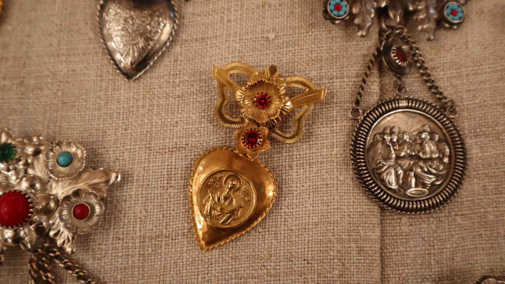 Прикраси, виготовлені Василем Білоножком: Яблучний Спас, сережки‐янгуски та дукач